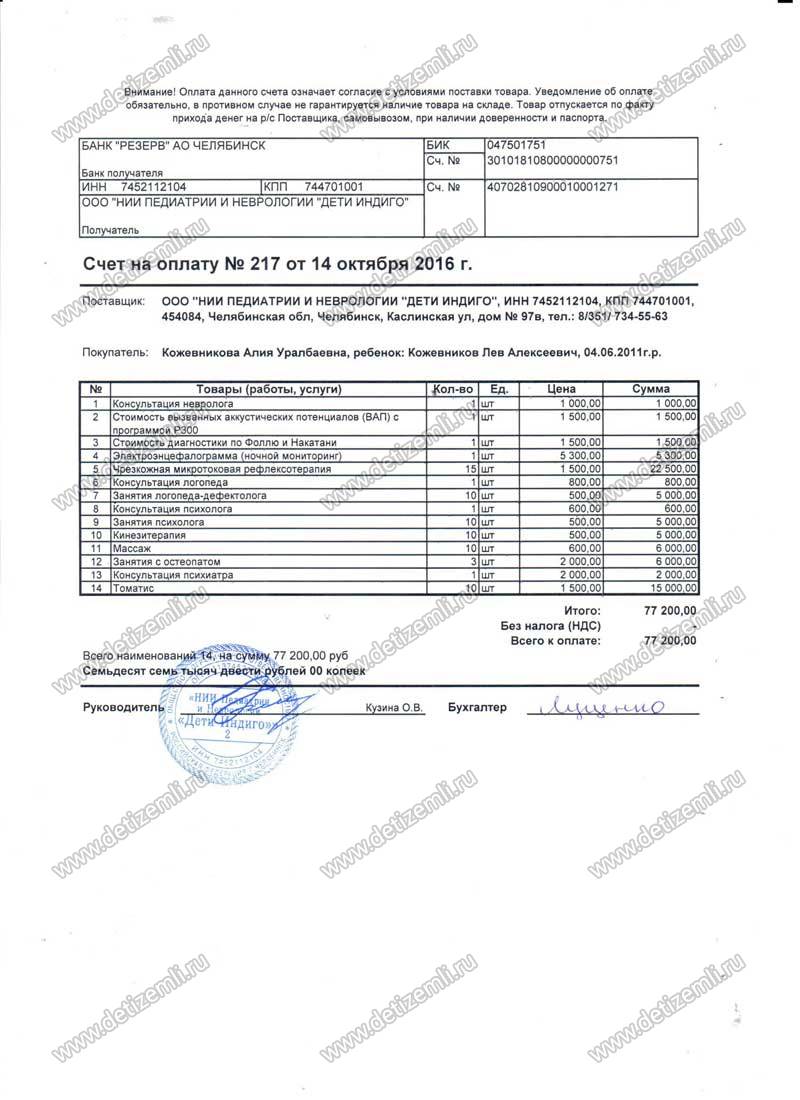 Оплачено лечение ребенка стоимостью 77200 рублей.
