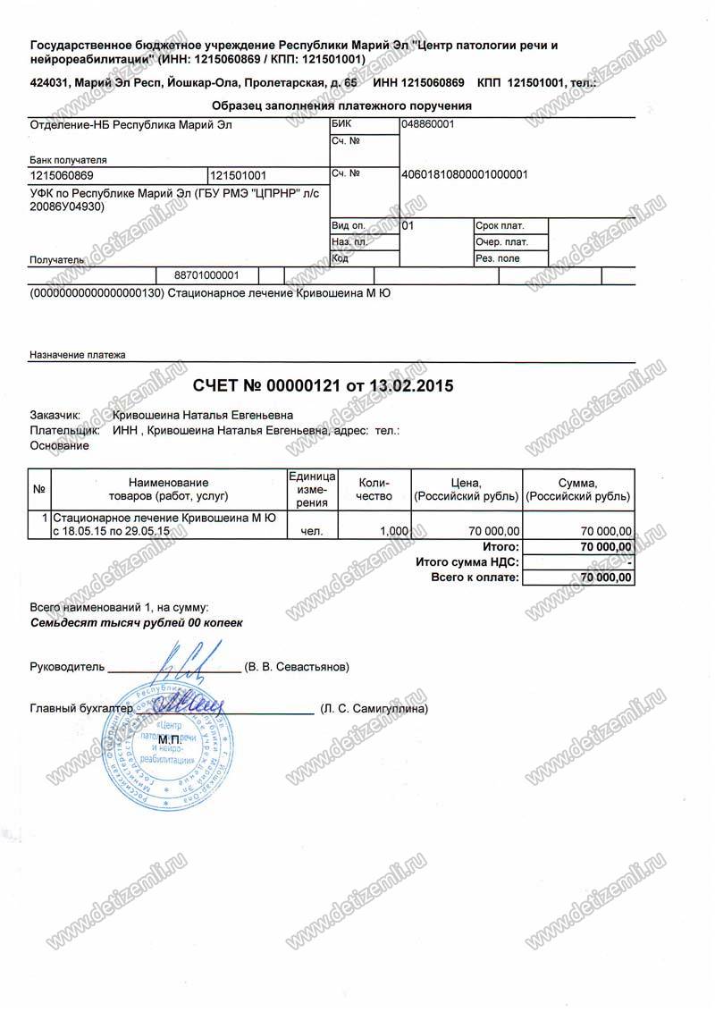 Оплачено лечение Максима стоимостью 70000 рублей.
