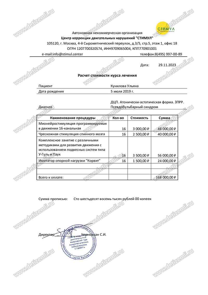 Наша семья хочет выразить Вам огромную благодарность за оказанную помощь в оплате курса реабилитации нашей дочери Куниловой Ульяны в центре коррекции двигательных нарушений «Стимул» г.Москва.