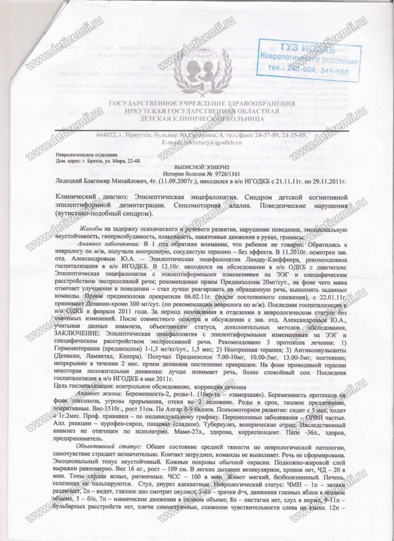 Благотворительный фонд помощи детям «Дети Земли» начинает сбор пожертвований на лечение Ледецкого Благомира. Стоимость лечения 74000 рублей. У ребенка эпилептическая энцефалопатия, мальчик не разговаривает и отстает в развитии от сверстников. Помогите Благомиру победить его страшную болезнь!