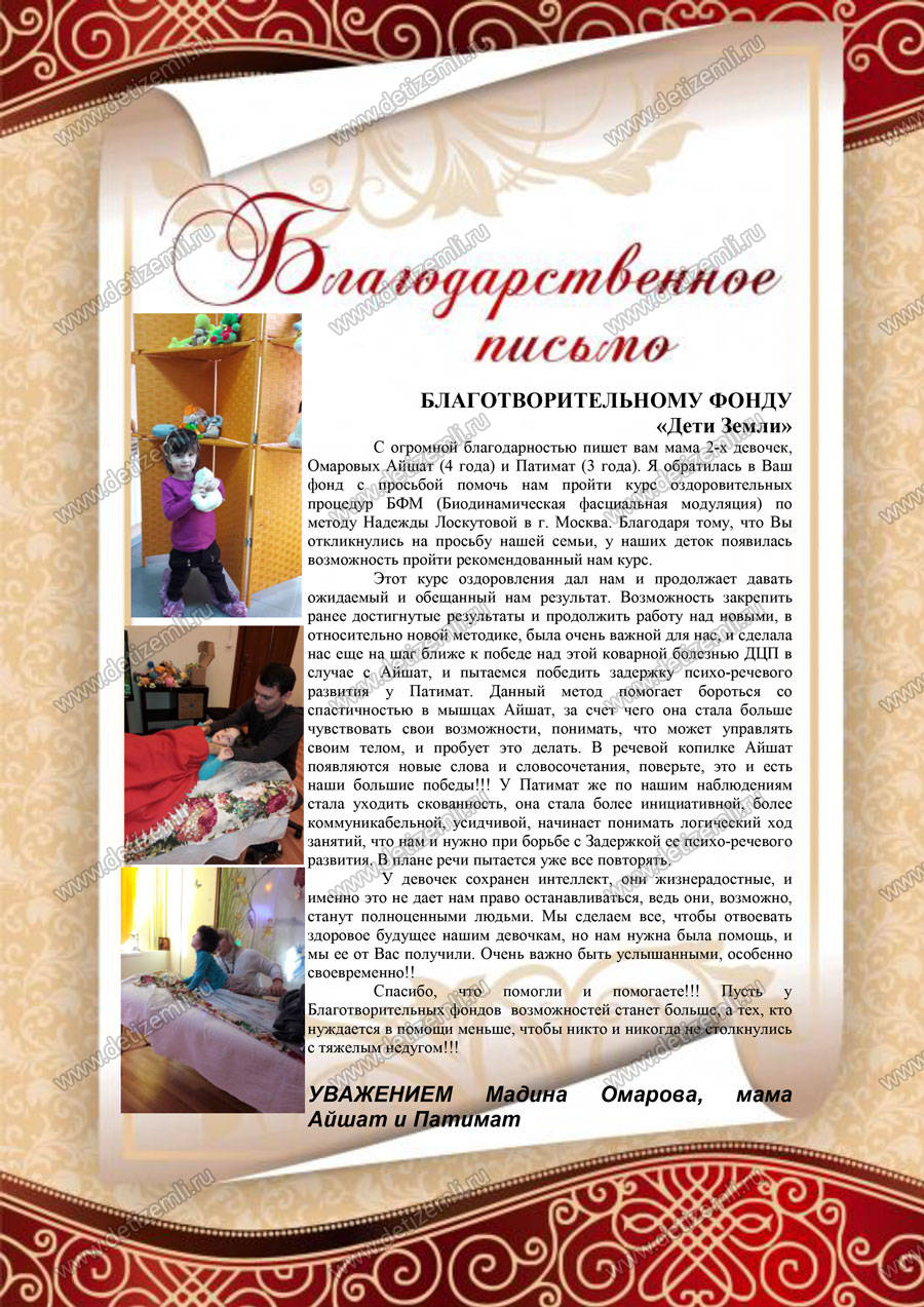 Благодарность мамы Айшат и Патимат Омаровых