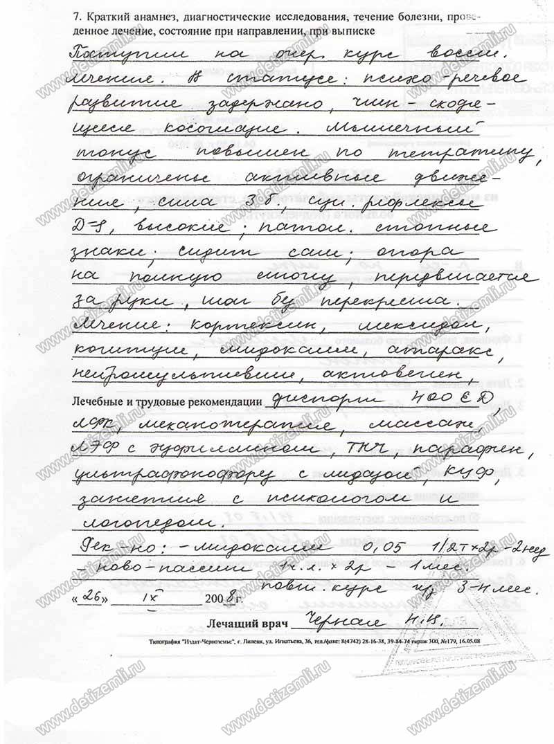 Диагноз: детский церебральный паралич, спастический тетрапарез, ЗПМР