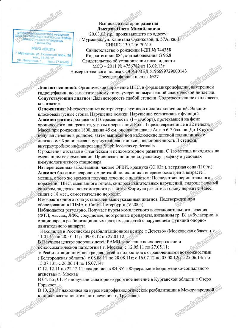 В 2003 году 20 марта в нашей семье родился долгожданный сыночек Лысцев Олег. Уже в год нам поставили диагноз ДЦП. Лечение стали проводить незамед/пительно. Ездили по разным городам — Москва,
