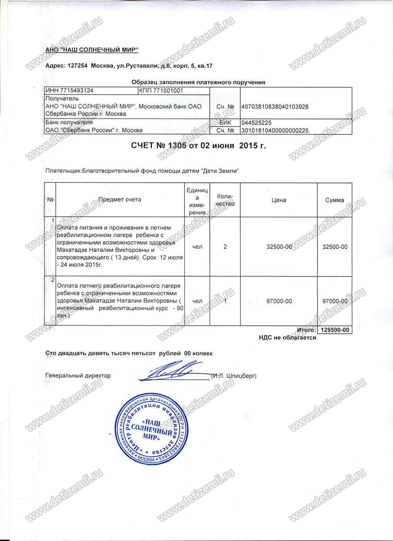 Оплачено лечение Наташи стоимостью 129 500 рублей.