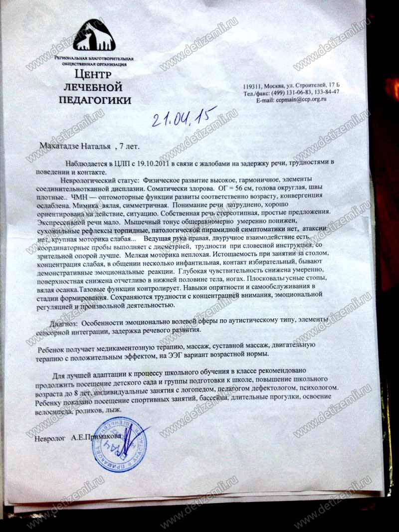 Письмо мамы Махатадзе Наташи