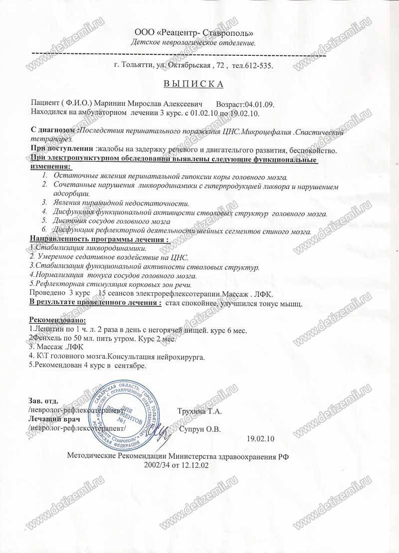 Диагноз: последствия перинатального поражения ЦНС, микроцефалия, спастический тетрапарез
