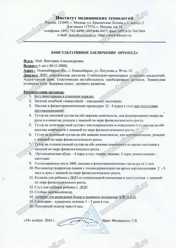 У Вики детский церебральный паралич, необходимо лечение стоимостью 172400 рублей. Материальное положение семьи ребенка не позволяет оплатить дорогостоящее лечение. Просим помочь больному ребенку в оплате лечения!