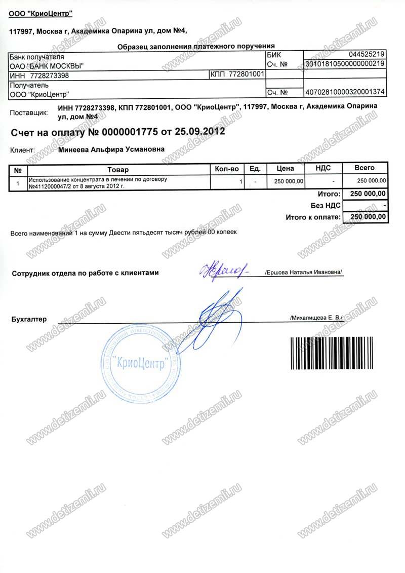 Оплачено лечение Минеевой Вики в Криоцентре стоимостью 250 000 рублей.