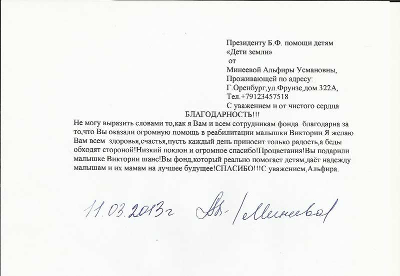 Оплачено лечение Минеевой Вики