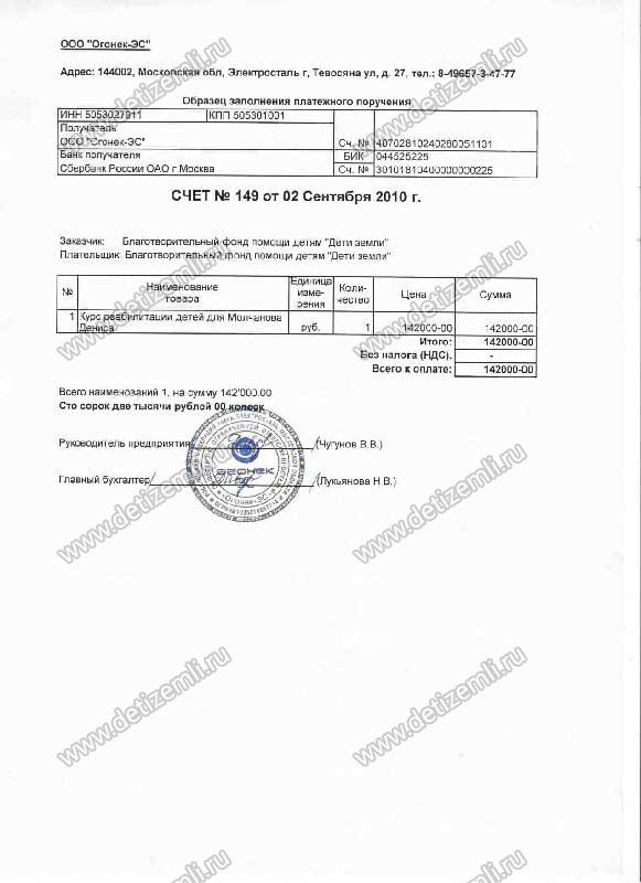 Полностью оплачено лечение Дениса стоимостью 142 000 рублей.