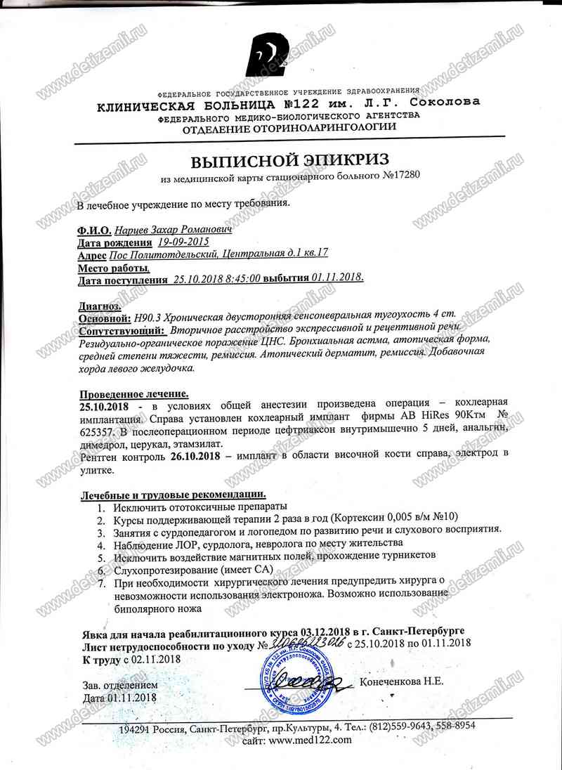 Благотворительный фонд помощи детям «Дети Земли» просит оказать помощь больному ребенку. У Нарцева Захара хроническая тугоухость 4 степени. Захару сделали операцию и установили импланты. А теперь требуется дорогостоящая реабилитация стоимостью 140000 рублей. Помогите Захару Нарцеву!