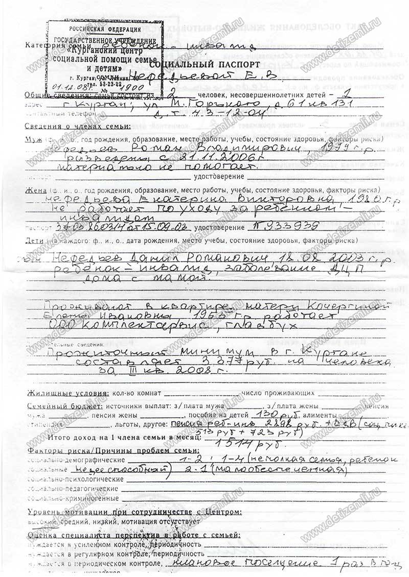 Обращается к Вам Нефедьева Е.В., мать ребенка-инвалида Нефедьева Данила Романовича. Мой малыш родился 18 августа 2003 года гораздо раньше положенного срока. Состояние его было крайне тяжелым, но врачи сделали все возможное, чтобы спасти его. Три месяца мы с сыном пролежали в отделении интенсивной терапии. В год сыну поставили страшный диагноз-ДЦП.