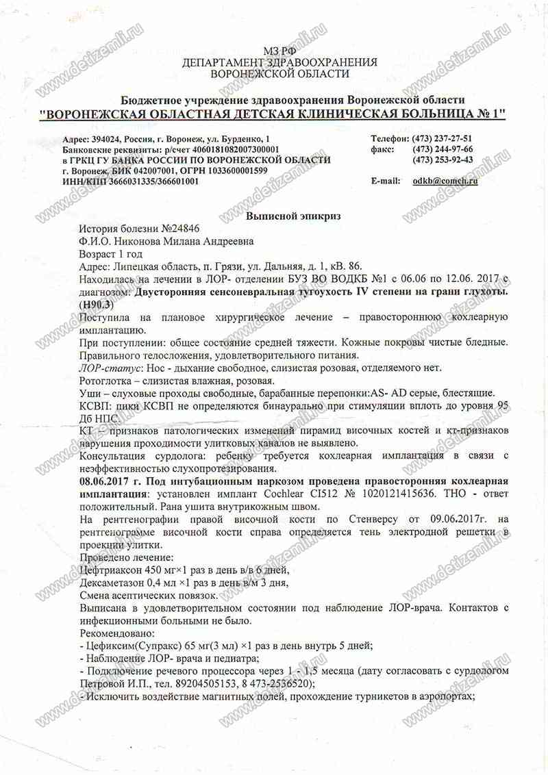 Из письма мамы. В феврале 2016 года мы заметили, что одна из девочек, Милана, не реагирует на звуки. Хотя при выписке из роддома прошла тест на слух. Много было пережито, много пролито слез. В апреле 2017 года в Центре аудиологии и слухопротезирования нам поставили диагноз: «Двусторонняя сенсоневральная тугоухость 4 степени пограничная с глухотой». В июне 2017 года сделали операцию на правое ухо. Сейчас девочке необходимо лечение в клинике стоимостью 165000 рублей. Помогите больному ребенку!