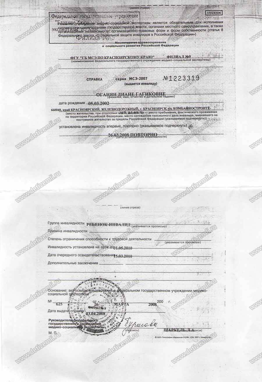 Из письма фонду мамы Оганян Дианы Оганян Екатерины Анатольевны