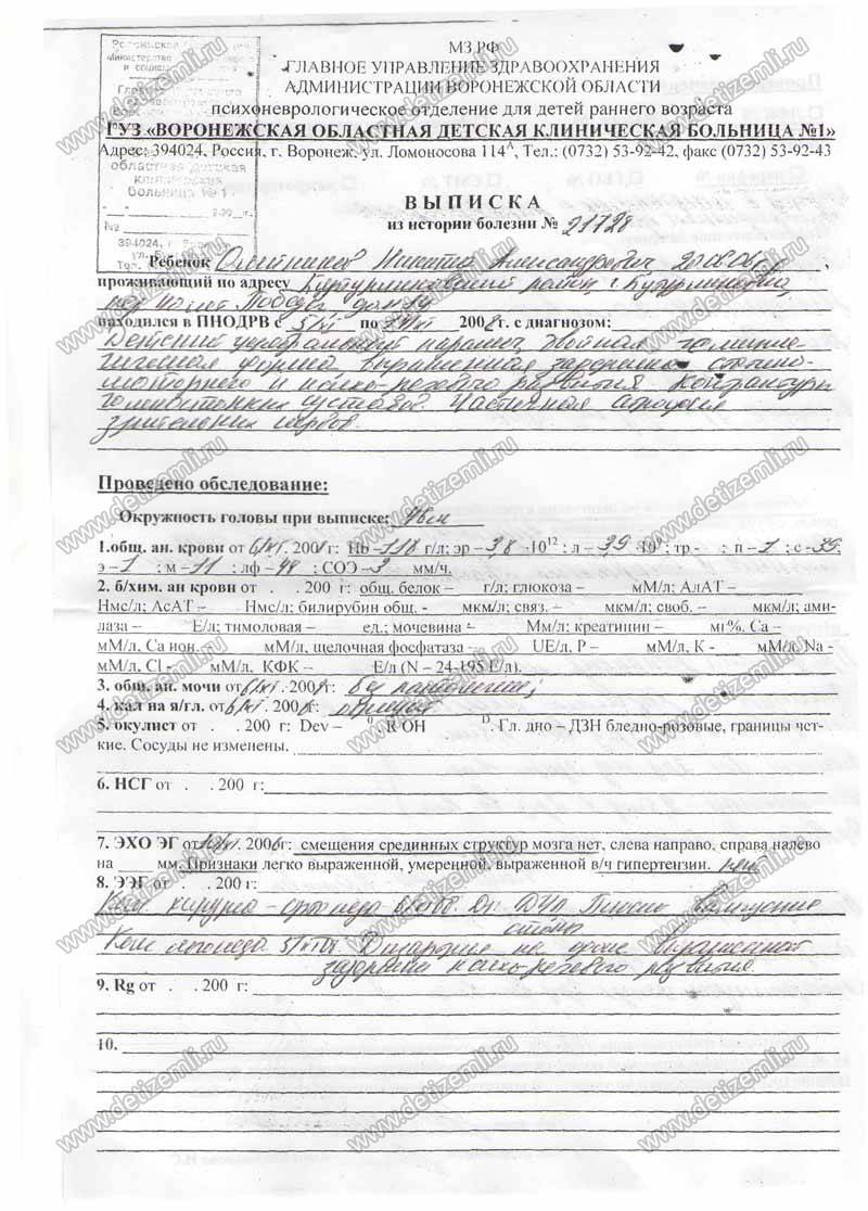 Никита родился 20.06.2006 г. недоношенным на сроке 31-32 недели, весом 1800, очень слабым. Врачи не давали надежда, что ребенок выживет. Живем мы в районном центре Воронежской области. Больница у нас маленькая и без соответствующего оборудования. Сразу после рождения ребенка нас перевели в реанимацию г. Воронежа. Никита был целую неделю на искусственной вентиляции легких. В следствии гипоксии – поражение ЦНС, врожденная аномалия почек. Сейчас каждые два месяца мы лечимся в ОКБ №1 г. Воронежа. Мы постоянно лечимся в больницах, посещаем реабилитационный центр « Парус Надежды» в г. Воронеже. Три раза ездили в центр Романова г. Санкт – Петербург. За все приходится платить. У нас в семье двое детей, а работает только муж. Средств на лечение сына просто нет. Мы в безвыходной ситуации. Сейчас Никите три с половиной года, но он не сидит и не ходит. Пытается разговаривать. В данный момент нам необходимо лечение в г. Тула стоимостью 17000 рублей. Очень надеемся, что в реабилитационном центре Ульзибата в г. Тула нам смогут помочь и Никита пойдет на поправку.