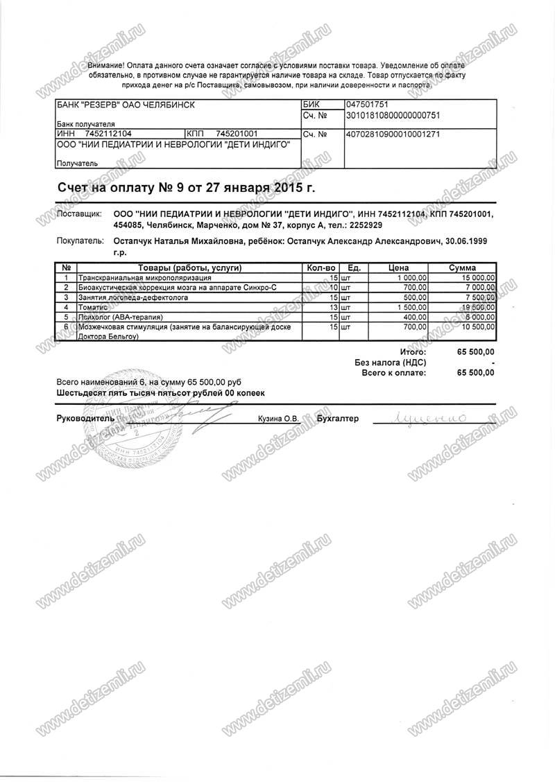 Оплачено лечение Саши стоимостью 65500 рублей.