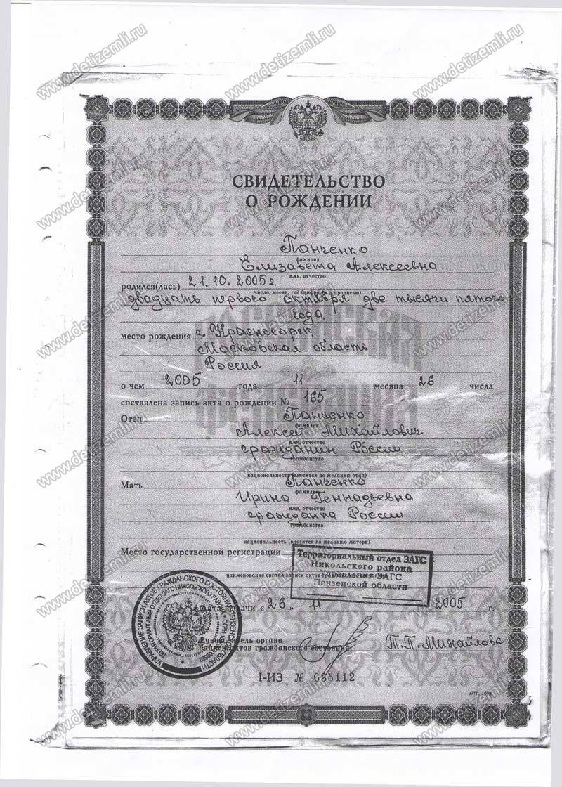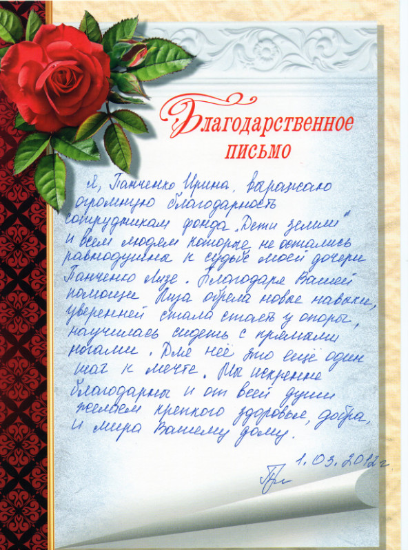 Письмо мамы Панченко Лизы