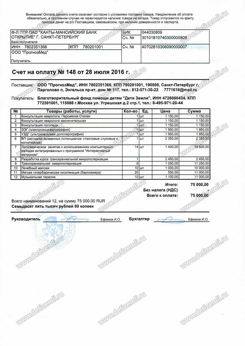 Оплачено лечение Степана стоимостью 75 000 рублей.