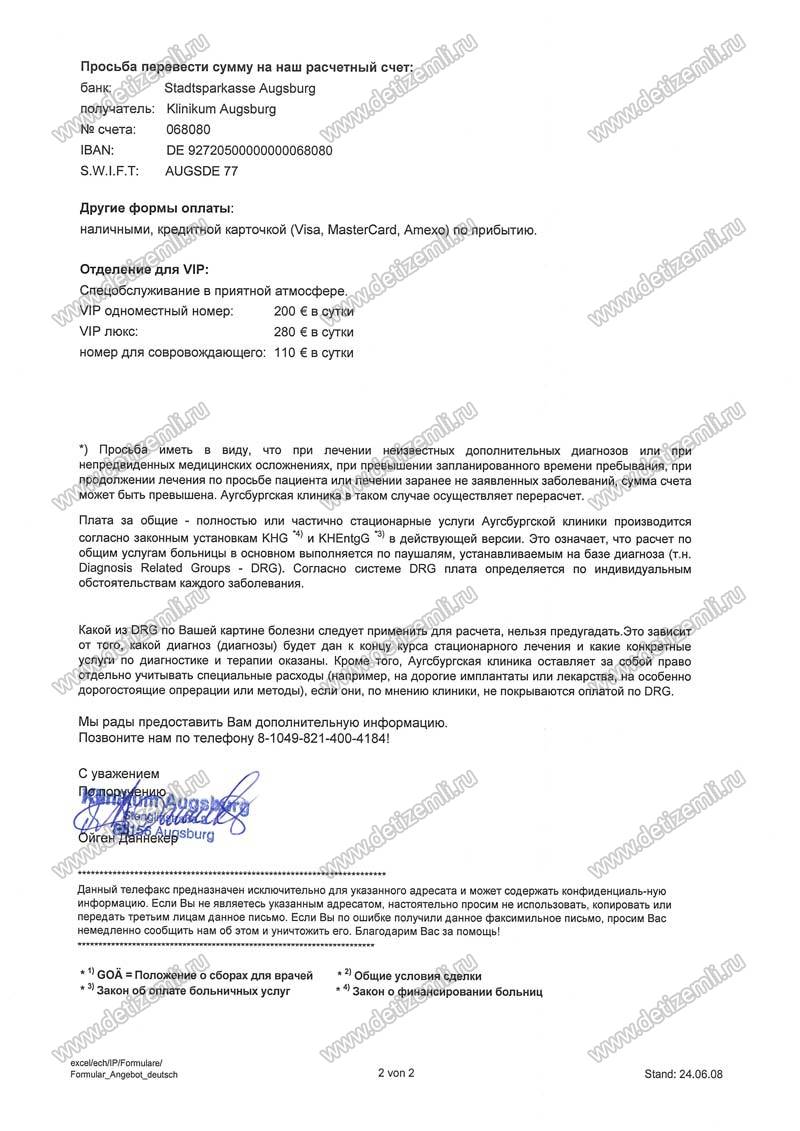Оплачено лечение в немецкой клинике стоимостью 6 300 евро