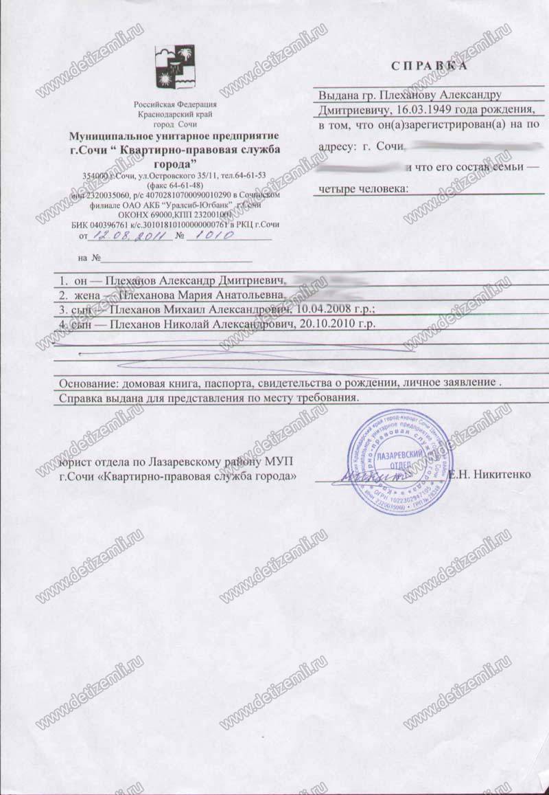Благодарность от семьи Плехановых