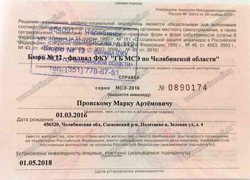 Оплачено лечение Пронского Марка