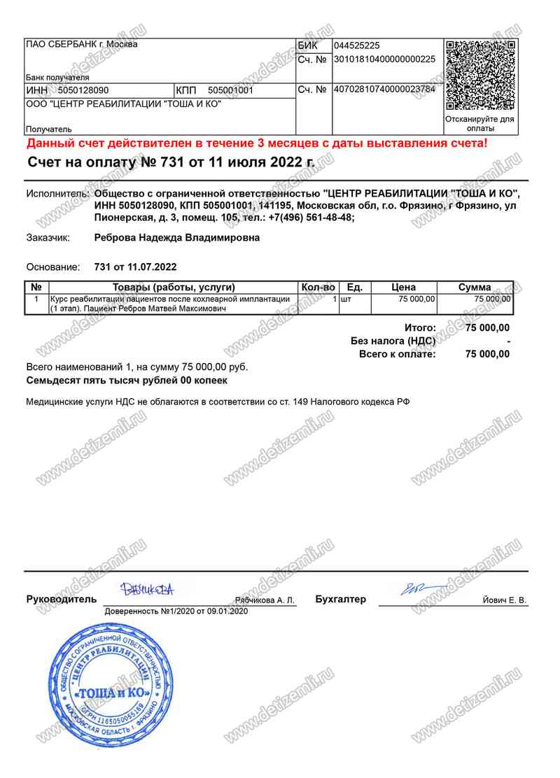Оплачено лечение Матвея стоимостью 75000 рублей.