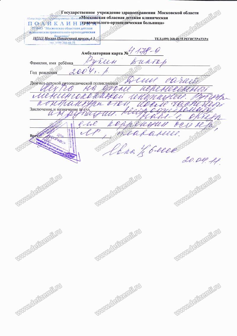 Здраствуйте, меня зовут Ирина Рубина. Мой ребёнок родился 18 мая 2004 года. В июне 2005 года мой сын перенёс мемингококковую инфекцию, менингококцемию в тяжелой форме. Неделю мы находились в реанимации и ждали умрёт он или нет. Он переборол эту болезнь, но у него сформировался некроз пальцев стоп с переходом на стопы до уровня Шапарова сустава. После длительного лечения в Детской Российской Клинической Больнице и сформирования чёткой демокрационной зоны ребёнку произвели операцию: ампутация некротизированных пальцев обеих стоп и иссечение нежизнеспособных тканей подошвенной и тыльной поверхностей. Проще говоря произошла частичная ампутация обеих стоп.