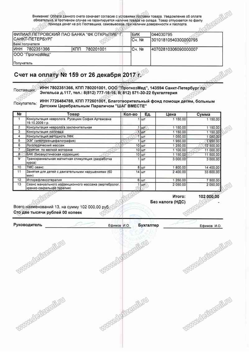 Оплачено лечение Софии стоимостью 102000 рублей.