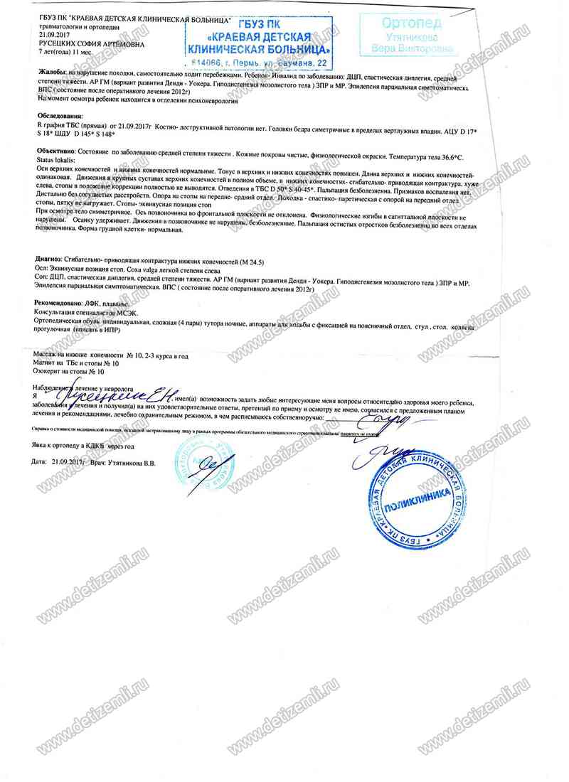 У Сони спастика мышц — они постоянно находятся в сильном напряжении. Врачи рекомендуют пройти курс дельфинотерапии, использовать имитатор ходьбы «Имитрон» и заниматься дома на специальном игровом комплексе. Однако и на оплату курса, и покупку оборудования нужны деньги, а семья живет очень бедно. Семья просит вашей помощи.