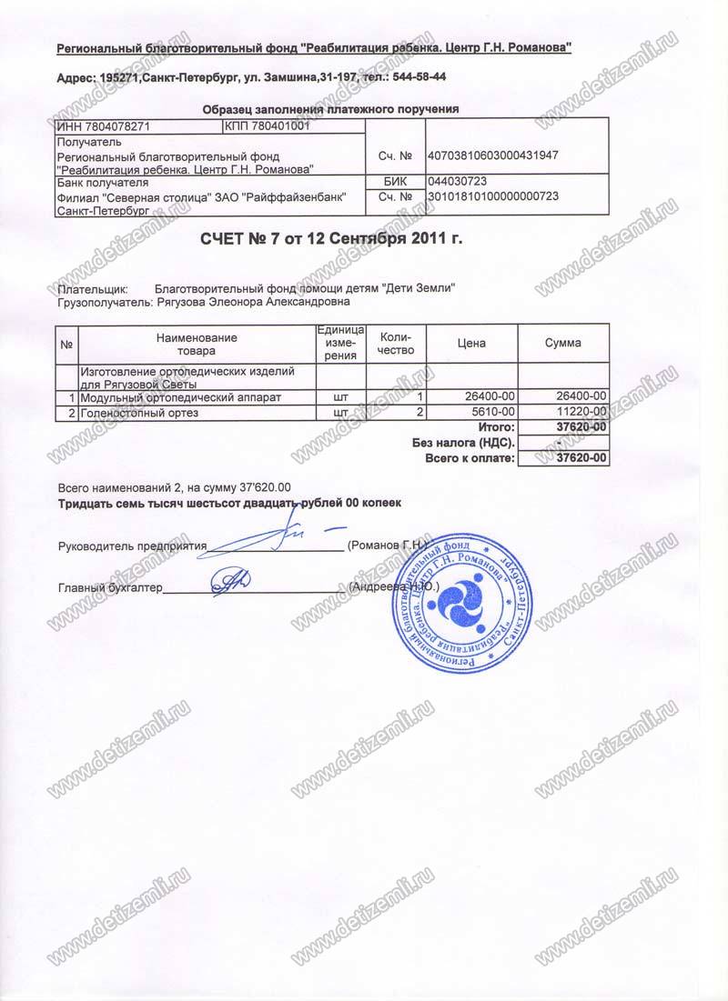 Полностью оплачен ортопедический аппарат стоимостью 37 620 рублей.