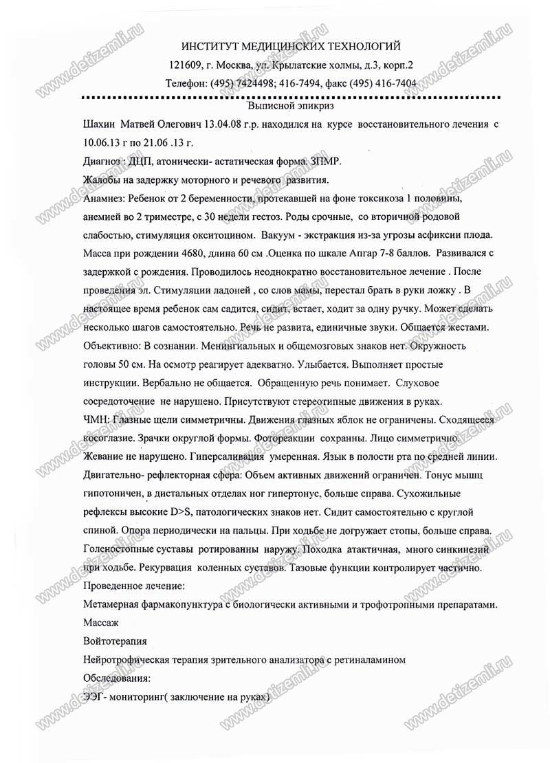 Диагноз: детский церебральный паралич