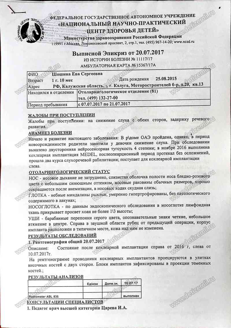 Благотворительный фонд помощи больным детям «Дети Земли» просит оказать помощь Еве Шошиной из Калуги. У девочки врожденная глухота. Сейчас необходимо срочное лечение стоимостью 75000 рублей. Помогите больному ребенку!