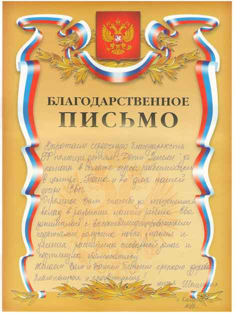 Благодарность от семьи Шошиных