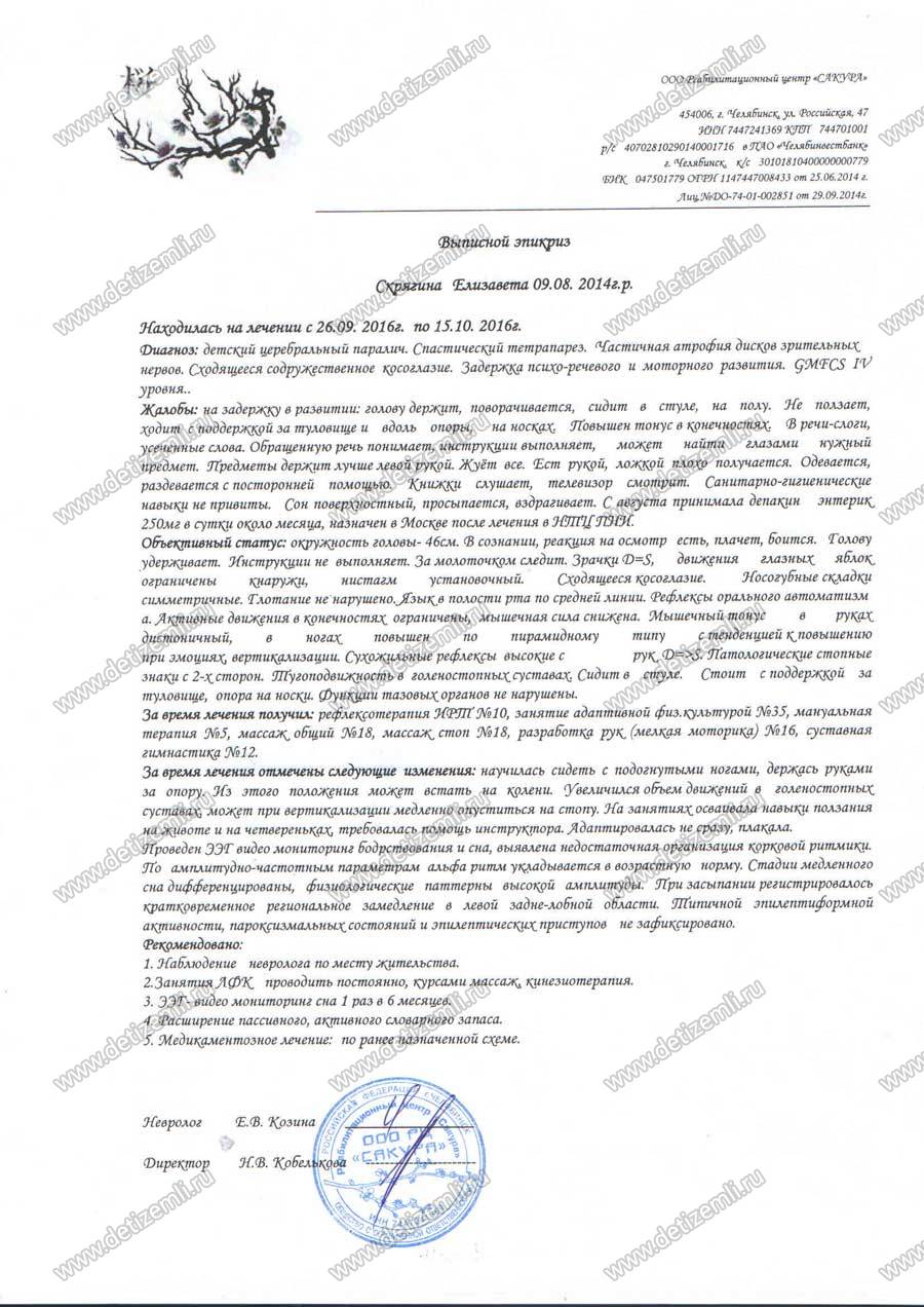 Оплачено лечение Лизы Скрягиной