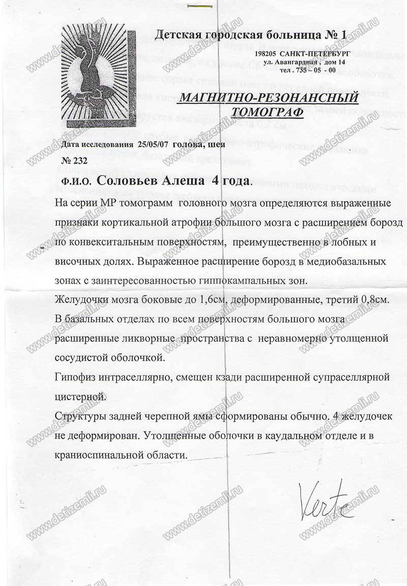 Меня зовут Соловьева Вероника. Мне 26 лет. У меня есть сын Алеша, ему 6 лет. В 7 месяцев Алеше поставили диагноз: детский церебральный паралич. Мой сын не ходит, не сидит, плохо держит голову. Сейчас я в разводе, воспитываю сына одна. Алешка постоянно нуждается в лечении. Денег на лечение не хватает, зарплата очень маленькая. В конце мая нам нужно ехать на лечение в Санкт-Петербург в Институт мозга человека, но такую сумму мне не потянуть. Мой сын очень красивый мальчик, он все понимает, любит смотреть мультфильмы, слушать музыку. Мне очень тяжело смотреть на Алешку когда он хочет быть как все, но не может. Роды у меня были очень тяжелые, врачи отнеслись плохо, и никому до меня не было дела. После рождения Алешу сразу поместили в реанимацию, где он пробыл 2 месяца. Примерно в 5 месяцев я начала замечать, что мой сын плохо держит голову, не сидит. Сейчас Алешке 6 лет, а его вес 12 кг. Врачи говорят, что моему сыну можно помочь, но для этого требуется постоянная реабилитация. Хочу обратиться ко всем людям, которые будут читать это письмо: «Помогите моему мальчику!» Лечение в Институте мозга человека приносит очень хорошие результаты, там великолепные специалисты. Хочу заранее всех поблагодарить, особенно тех, кто откликнется на мое горе. Низкий вам поклон!