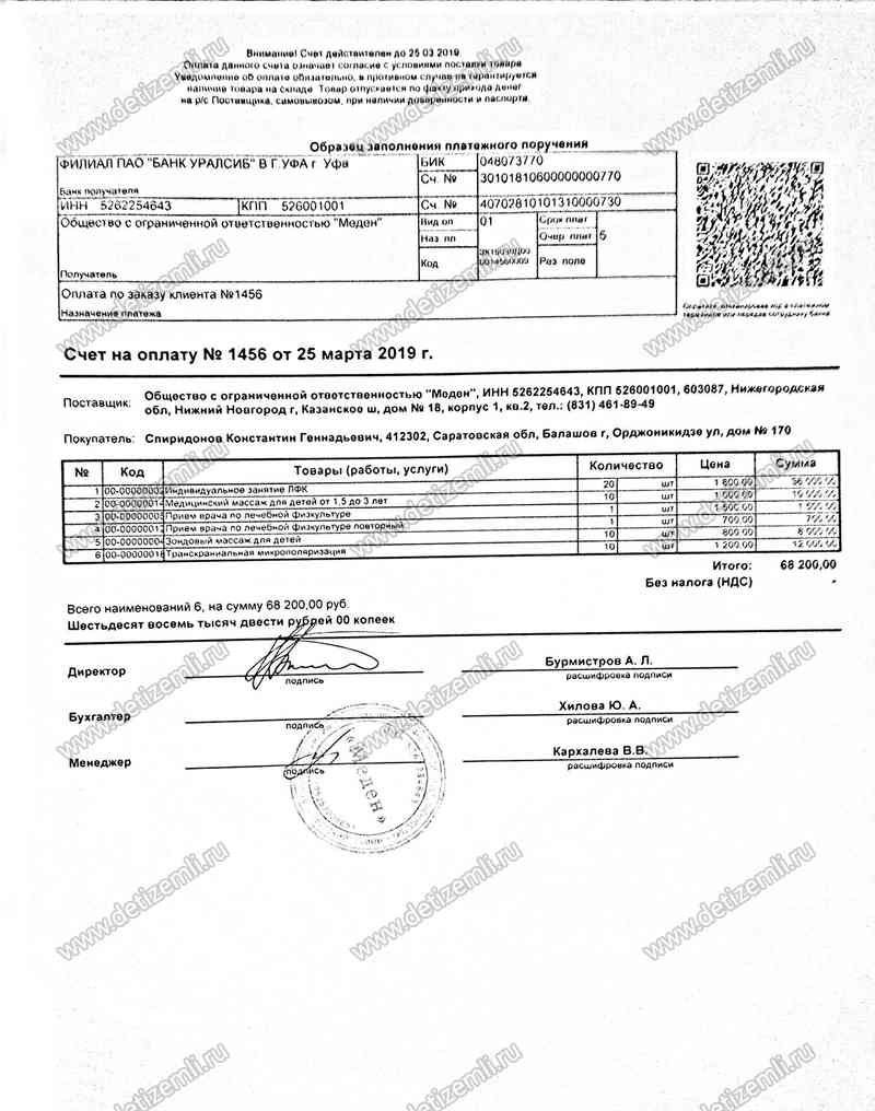 Оплачено лечение стоимостью 68200 рублей.