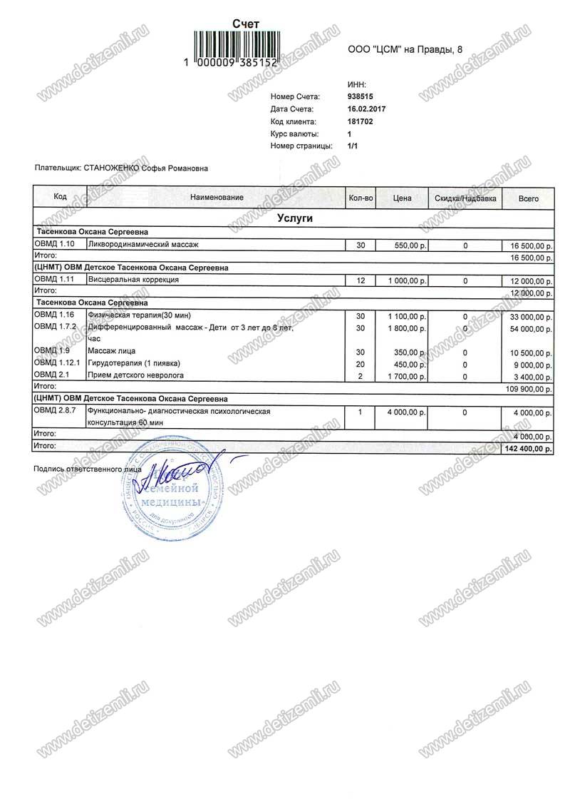 Оплачено лечение стоимостью 142 400 рублей.