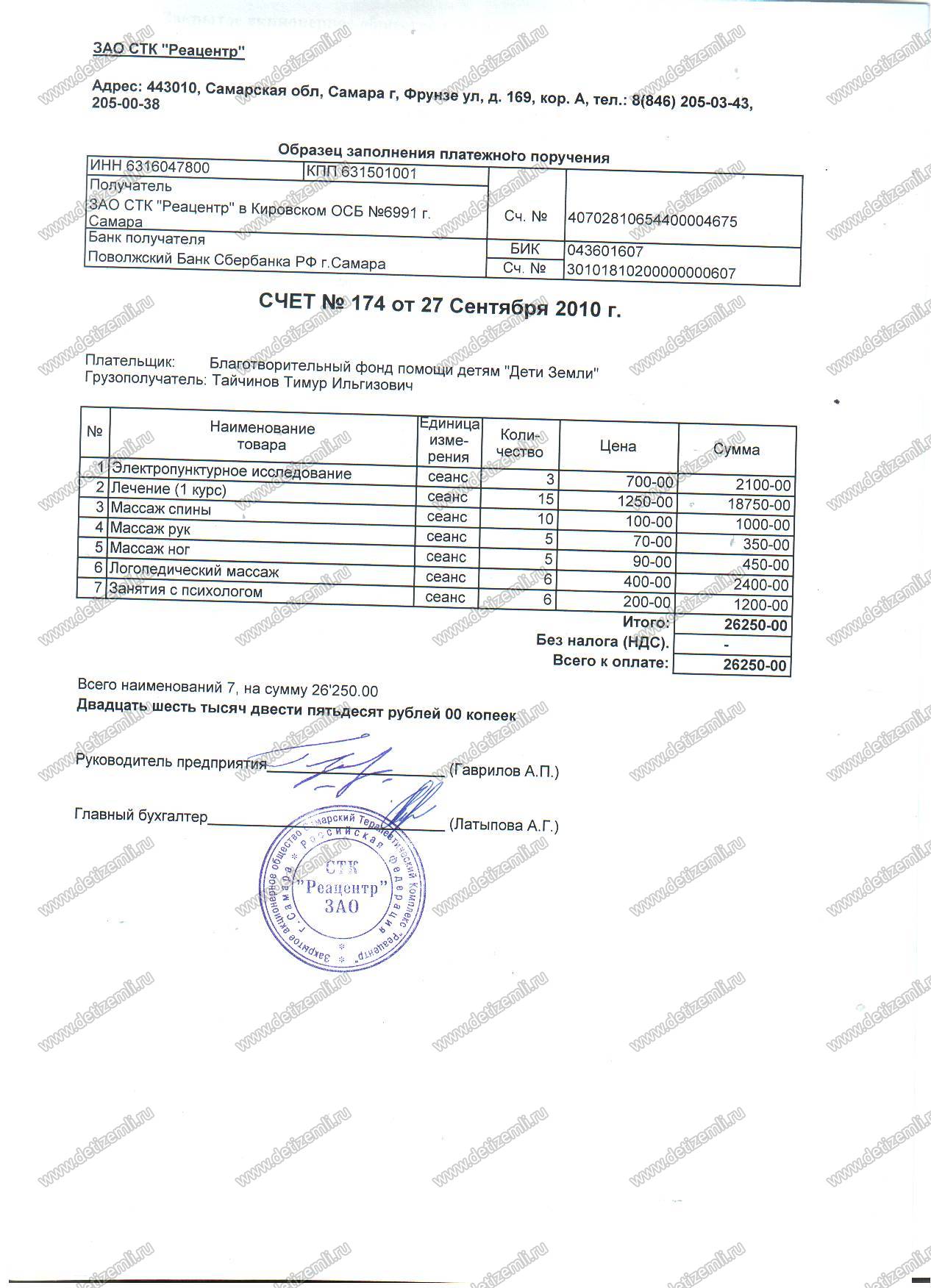 Оплачено лечение Тимура в г. Самара стоимостью 26 250 рублей
