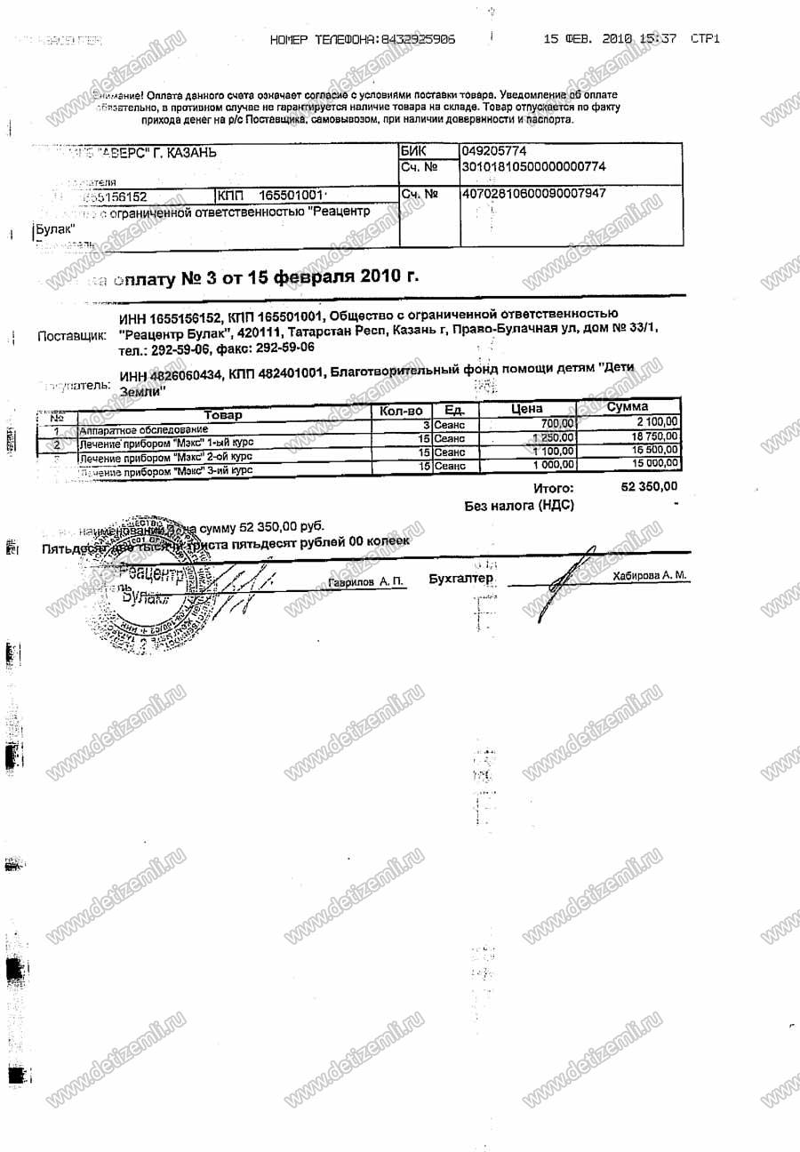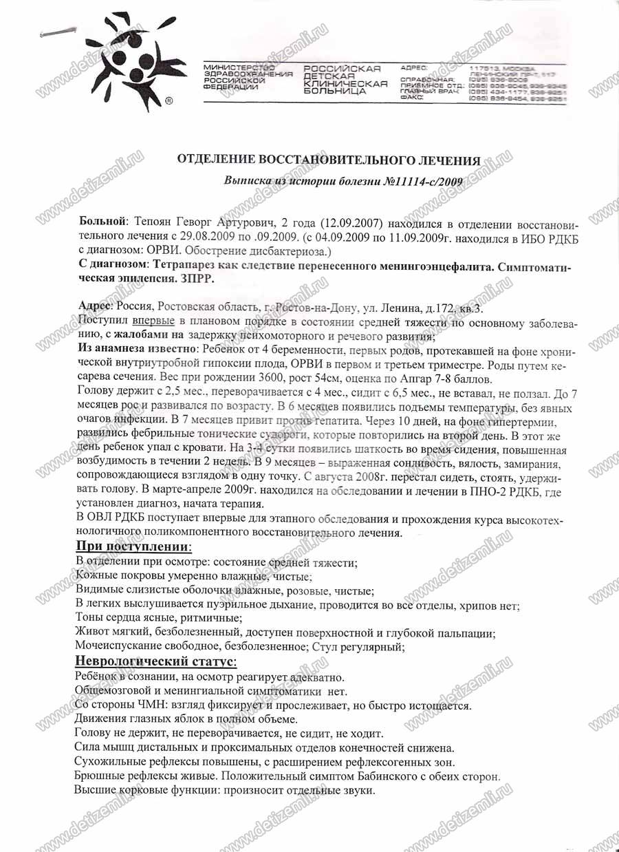 09.03.10. Оплачено лечение Герочки Тепояна в ООО "Реацентр Булак" г. Казань. Уже сегодня мама с мальчиком начали аппаратное обследование и первый курс лечения. Мы благодарим нашего постоянного помощника Виталия, который полностью оплатил лечение Геры. Спасибо вам большое!