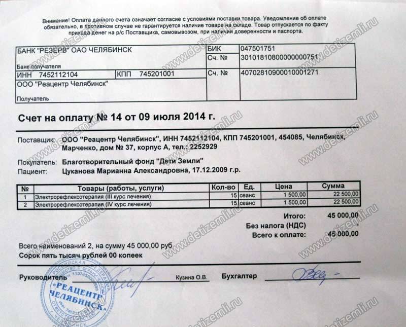 Оплачено лечение Марианны стоимостью 45000 рублей.