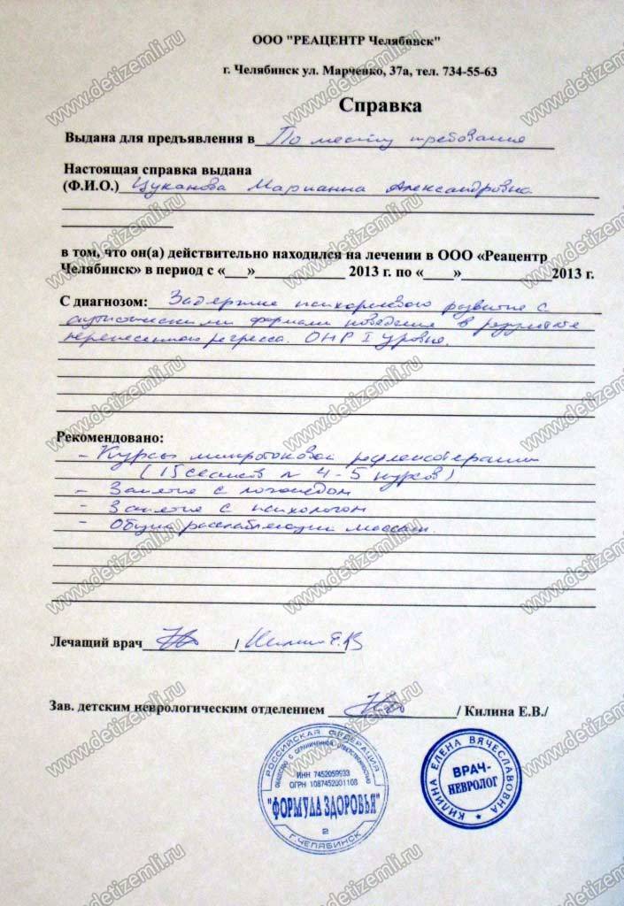 Марианна интеллектуально развитый ребенок, у нее очень хорошая память, благодаря которой она быстро приобретает знания (она знает все буквы алфавита, цифры до 10, геометрические фигуры, цвета и мн. др.). Для того, чтобы она заговорила, необходимо пройти 4 курса микротоковой рефлексотерапии в