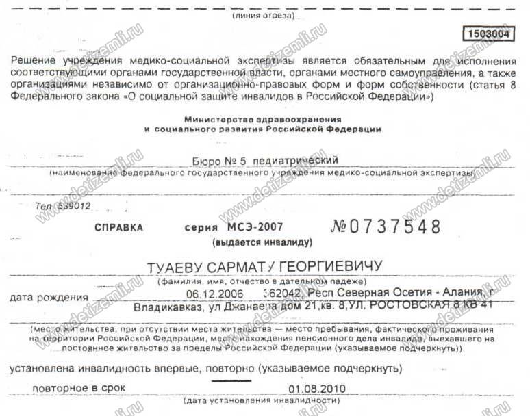 Мой сын Туаев Сармат тяжело болен с рождения. Роды проходили тяжело. К восьми месяцам ребенку был поставлен страшный диагноз ДЦП. Мальчик самостоятельно не сидит, не ползает, не ходит. На протяжении 4 лет мы боремся со страшной болезнью. Проходили лечение во многих клиниках: Москвы, Пятигорска, Санкт-Петербурга. Врачи отмечают улучшения, но требуются повторные курсы. Сармату требуется повторный курс лечения в ИМТ в марте 2011 г.