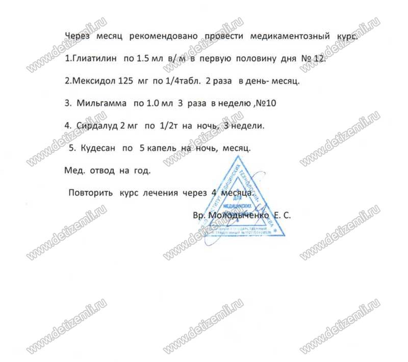 Диагноз: Органическое поражение ЦНС, перивентрикулярная энцефалопатия. ДЦП, спастико-гиперкинетическое форма. Вертебро-базилярная недостаточность. Задержка психомоторного развития