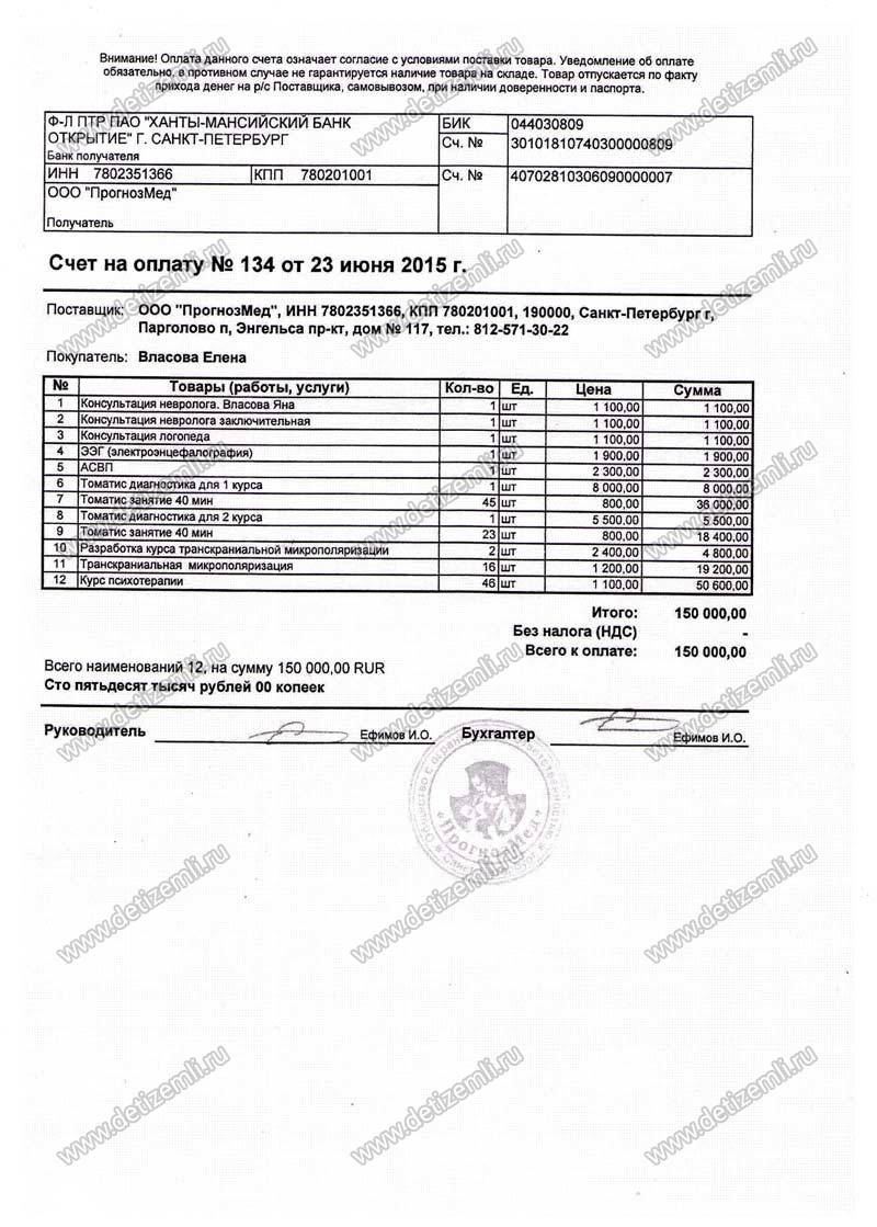 Оплачено лечение Яны стоимостью 150000 рублей.