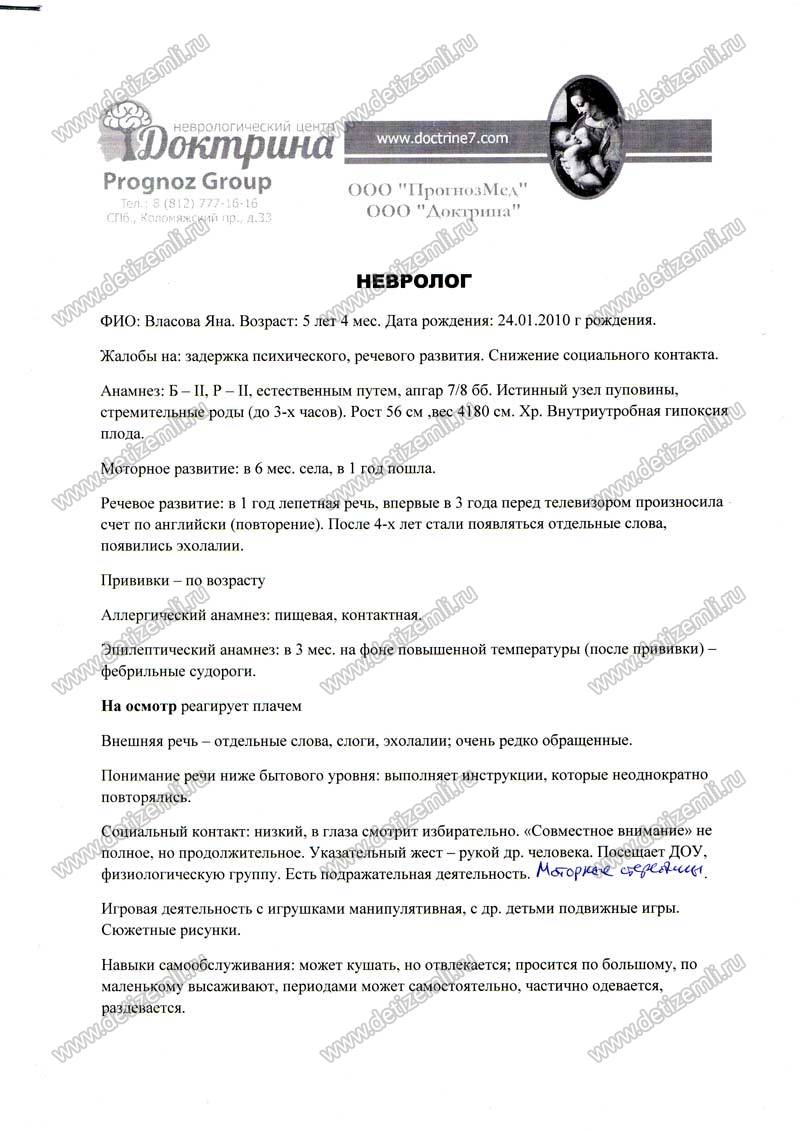 Яночка — второй ребенок в семье, девочка родилась доношенной и в срок. В три месяца ей сделали экспериментальную прививку от гепатита, после чего начались проблемы. Резко поднялась температура и начались судороги. Сейчас физически у ребенка все в норме, но малышка не разговаривает и