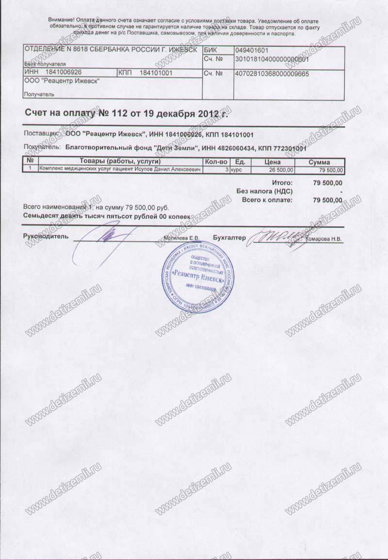 Оплачено лечение стоимостью 79500 рублей.