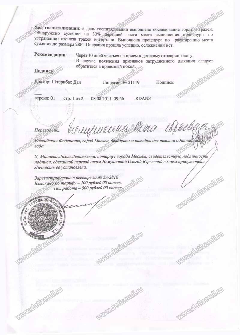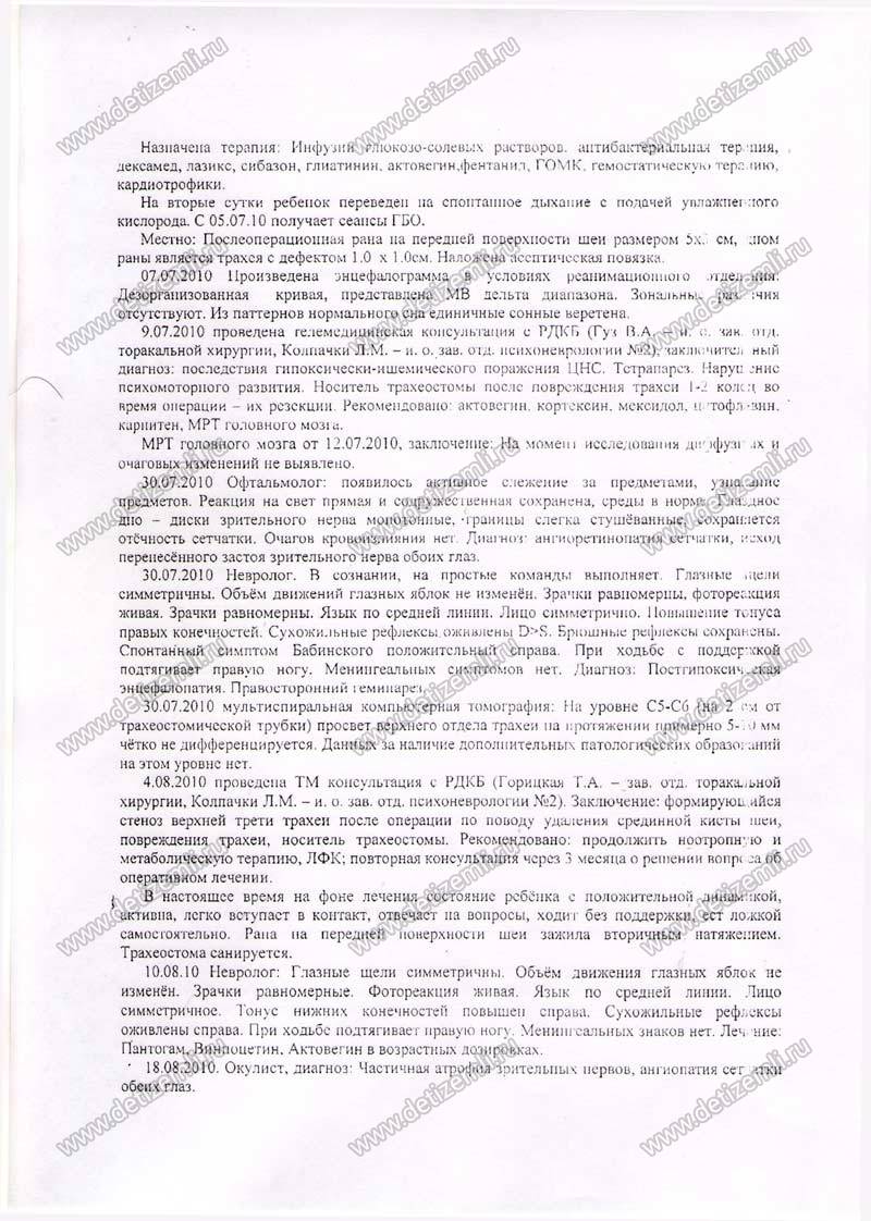 Во время операции врач как он потом сказал, случайно повредил трахею. Ребенка положили в реанимацию. Два дня мы не знали о здоровье нашей дочери. Меня не пускали к ней. На наши вопросы врачи отвечали, что состояние стабильное. Только после настойчивой нашей просьбы мы узнали правду. В ночь после операции в реанимации девочка стала задыхаться,