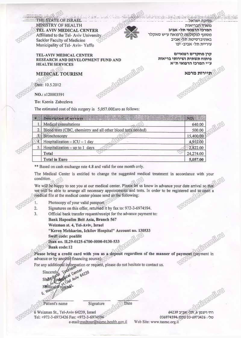 Оплачено лечение Ксении в Израиле стоимостью 5057 евро