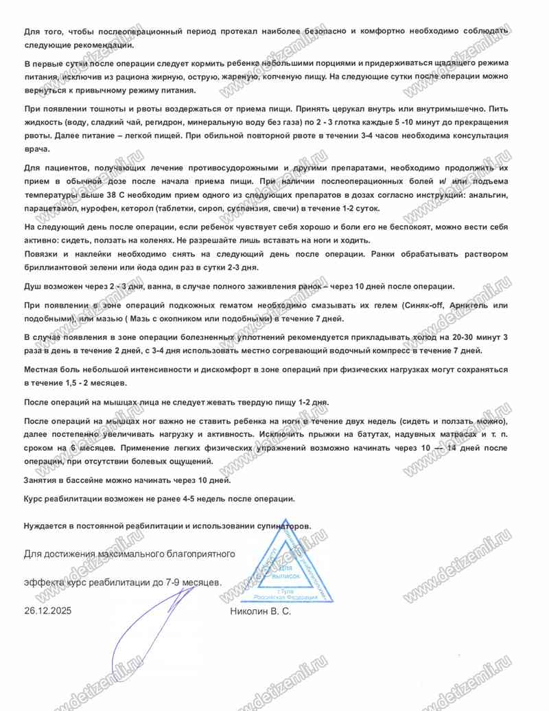 оперирующих врачей и занимающихся с Егором специалистов в области детской
