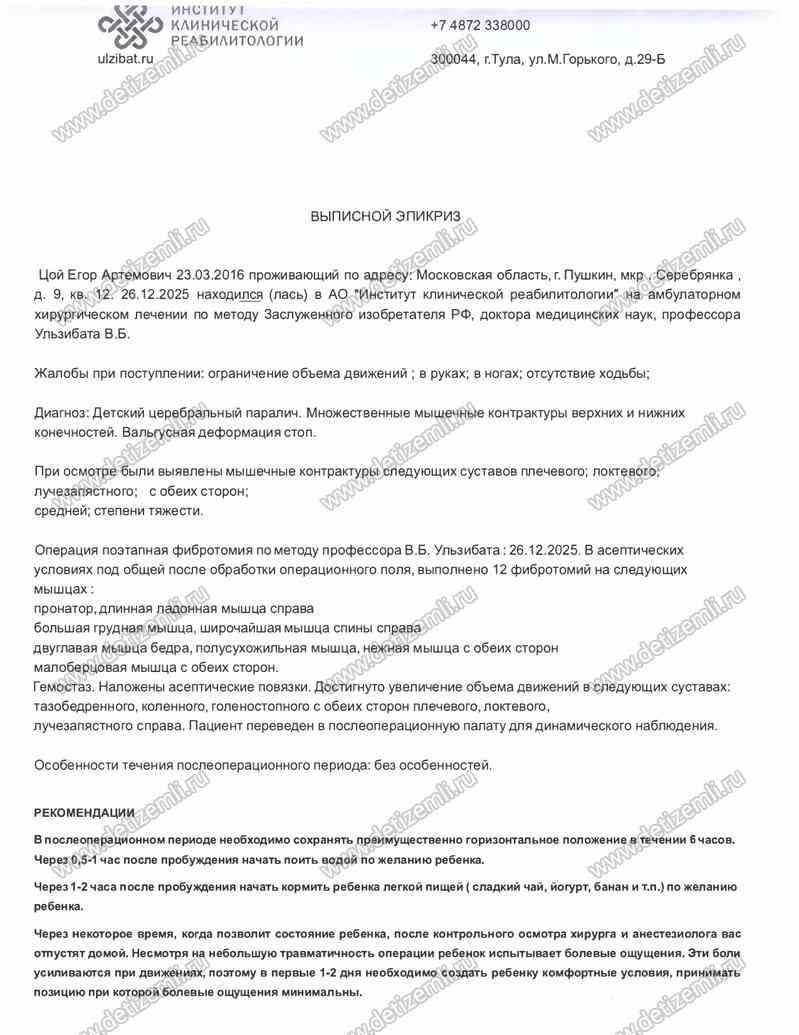 клинической реабилитологии Егору была проведена платная операция - поэтапная